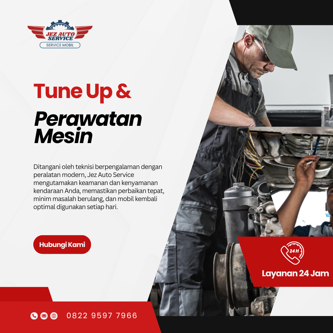 Jez Auto Service adalah bengkel mobil terpercaya di Kota Bandung yang menyediakan layanan perawatan dan perbaikan mobil secara lengkap. Didukung teknisi berpengalaman dan peralatan modern, kami melayani tune up, engine scanner, transmisi manual & matic, kelistrikan, kaki-kaki, hingga layanan panggilan 24 jam dengan fokus pada keamanan, kenyamanan, dan kepuasan pelanggan.